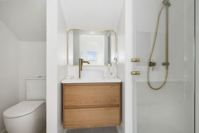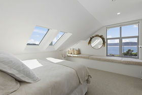At the very top of the home, the fourth bedroom offers something truly special. A peaceful retreat with expansive window seating where you can bask in the sun while taking in sweeping harbour views. Skylights open to welcome the sea air and the gentle sound of the waves below.