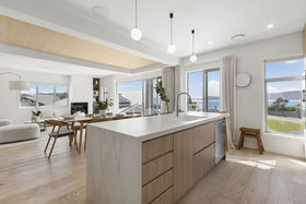The heart of the home is simply stunning. A beautifully designed kitchen anchors the main living space, flowing into a light filled lounge where expansive windows frame breathtaking views across the water. A calming neutral palette, refined lighting and high quality finishes create a space that feels both luxurious and welcoming.
